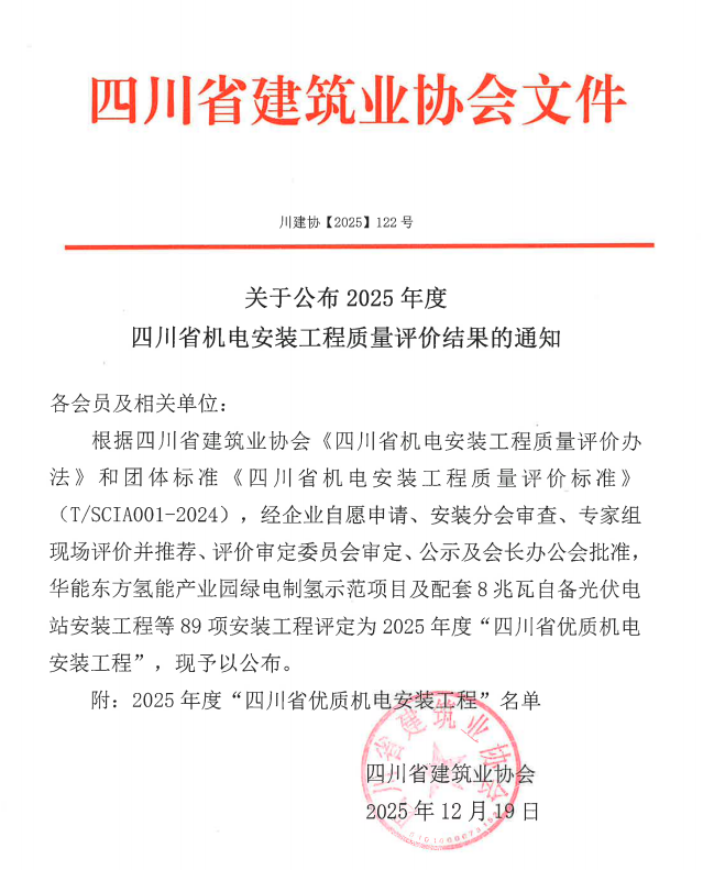 “四川省優質機電安裝工程”是省內機電安裝領域的權威質量獎項。其評選嚴格遵循《四川省機電安裝工程質量評價辦法》及相關團體標準,需經過申報、初審、現場實地評價、資料復核、社會公示及最終審定等多重嚴謹環節。評選尤其注重工程的技術先進性、系統可靠性、綠色節能性及全生命周期的運行效能。能夠最終脫穎而出,意味著項目在機電安裝的工藝、質量、技術創新和管理水平上,均達到了行業的標桿水準。